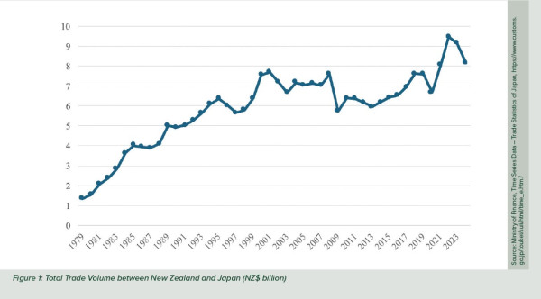 People-to-people links have traditionally also been strong. For decades, Japanese tourists have regarded New Zealand as one of the most attractive tourist and educational destinations (as did I). At their peak in 2002, more than 173,500 Japanese visited New Zealand annually. The prolonged economic stag nation Japan experienced from the 1990s to the 2010s, how ever, saw this number fall below 70,000. In the post-COVID period, the recovery has been steady: Japanese visitor numbers reached around 67,000 in 2024. This is still less than half the 2002 peak, but rising.3